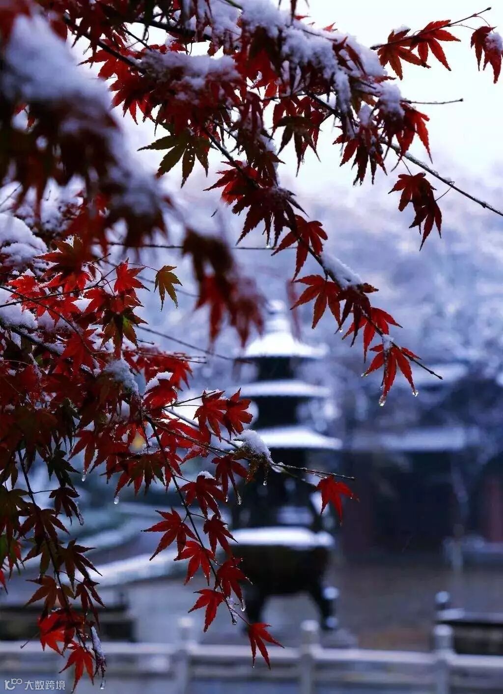或许你看过秋天“微风轻轻絮细语,枫叶千枝复万枝”枫叶正红的栖霞山,但是你不知道,在冬日的栖霞山凭栏看落雪有着别样的美。