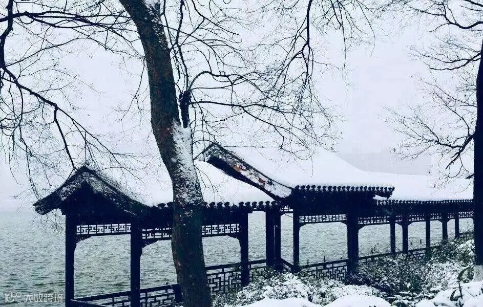 莫愁湖黯雪萧萧,霜树冥茫水影摇。寒雾伴风疏复密,海棠融露绽还凋。没有了暖春时节海棠的芳香,缺少了盛夏湖中荷花的绚烂,冬季的莫愁湖似乎少了一些颜色,但却显得更加的静谧安稳。