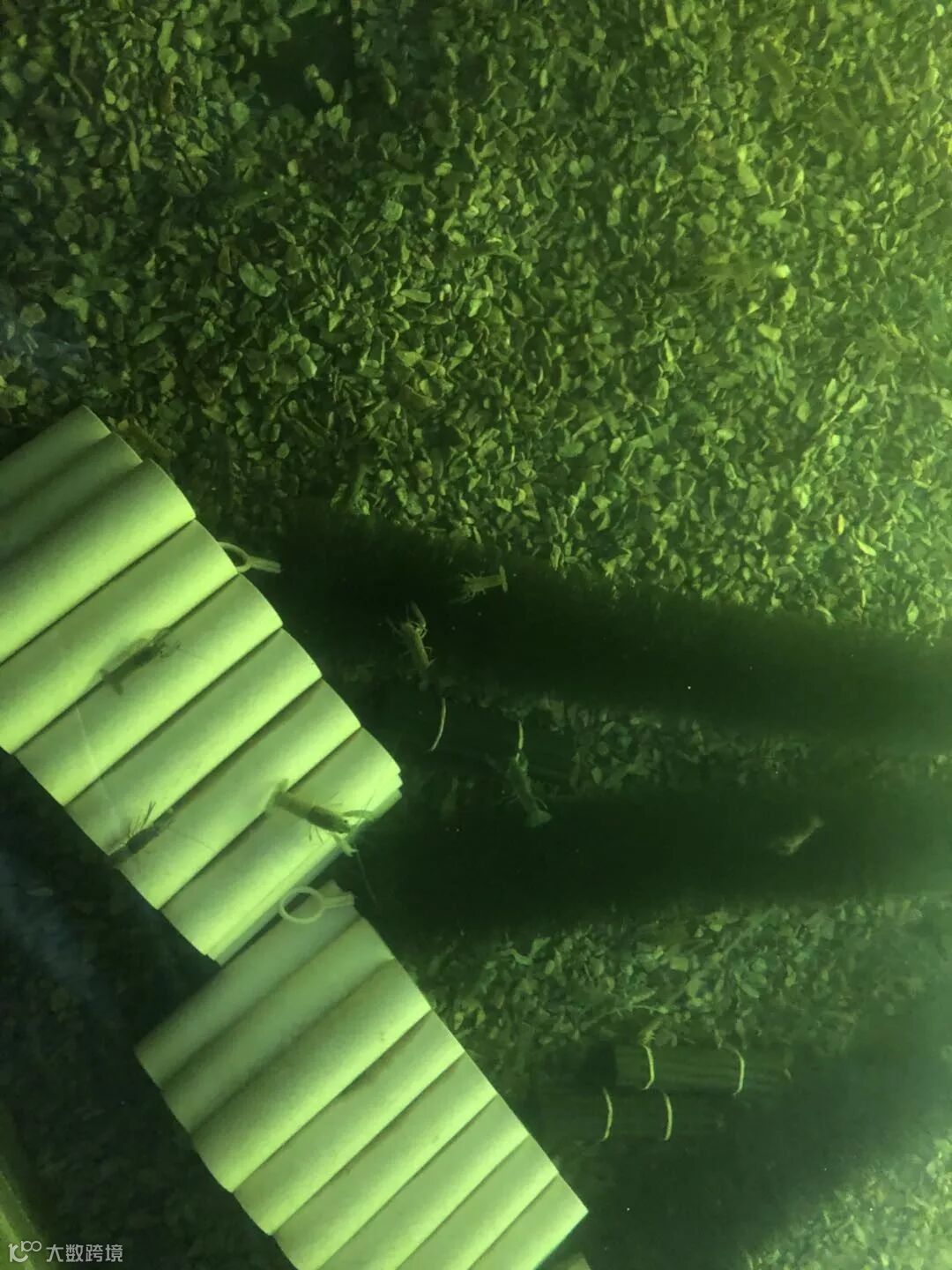 在养殖澳龙的水槽里有着一个个圆筒组成的网格,这些网槽就是小澳龙的“家”了,在网格里面看到一只只小澳龙,据说都是今年8月刚刚洒下的幼苗,到现在已经长成5-6公分了,最大的已经可以达到十几公分了,等达到一两左右就可以销售了。正是因为在这种与光伏互补的模式下,不仅为养殖澳龙提供了天然良好的的暗室作为栖息地,发出来的电还可以为澳龙增氧。