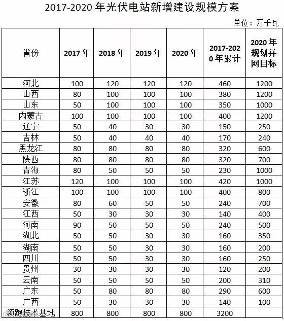 2017年,国家能源局发布了《关于可再生能源发展“十三五”规划实施的指导意见》以及各省十三五期间的光伏电站计划指标。