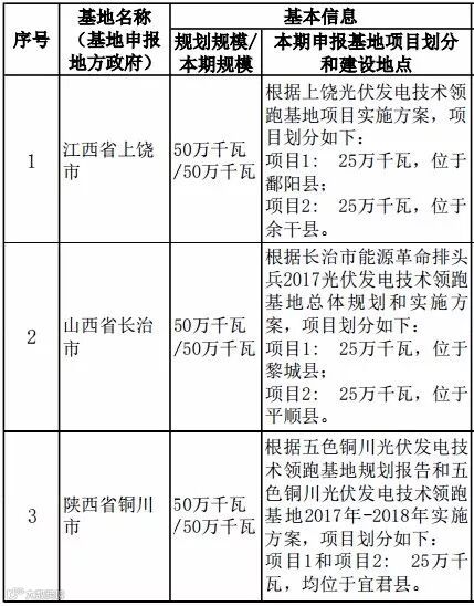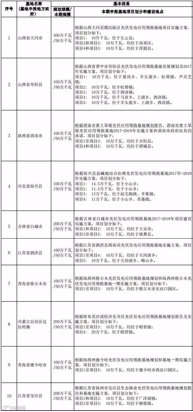 2017年11月22日,国家能源局官网公布了2017年光伏发电应用领跑基地和技术领跑基地拟入选名单。
