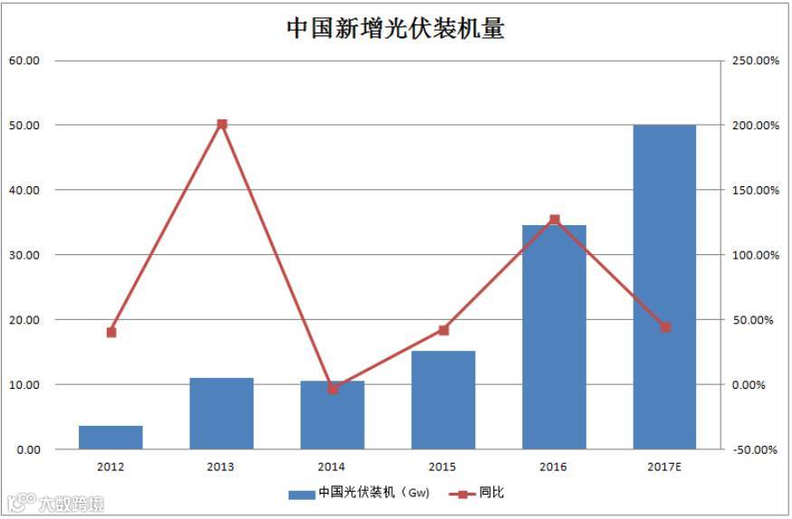 我们看到,今年全世界光伏装机量超过100GW的背后,中国也仍然是全世界最大的光伏市场,而2017年中国的光伏装机量也将首次突破50GW。