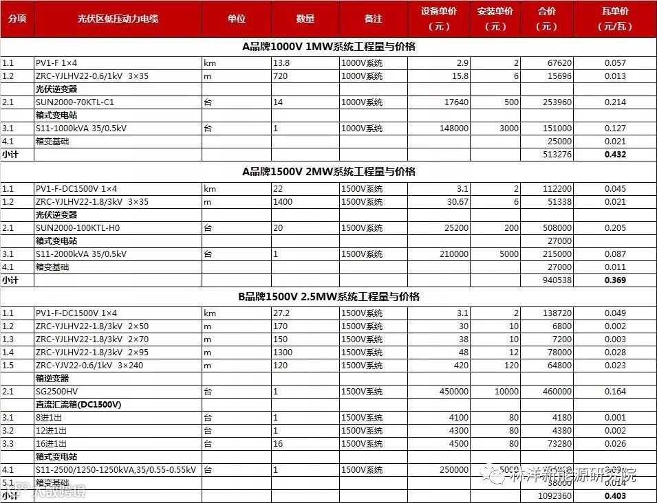5.降本实例:三种设计方案分别选取不同品牌和型号的逆变器,根据设备价格和设计方案所需子系统的容量、电缆用量、逆变器基础来计算相应的成本,在正式设计开始前明确最经济方案,再进行后续设计,实现最大化降本。