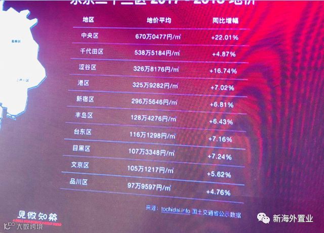 我这里有特别多的数据,东京二十三区完整土地价格变化,这是日本土地追踪信息网站,这个数据后面会跟大家分享我们投的一家公司,通过爬虫从网站上抓出来绝对真实的数据,我们从一个网站上分析了日本所有土地的变化。我们可以看到中央区,银座所在的地区,包括东京站的地区,土地上涨最快,因为是大型商业区首选的地带。千代田区,就是黄金所在的地方。涩谷区,最潮的,游客最多的地方。港区,也是六本木和商务区比较多。新宿区,中国游客最熟的是新宿区,但是新宿区确实是涨的最慢的地价,这里中央区的土地很贵,因为他的容积率很高,中央区可以盖高楼的。奥运会的场馆在这里,这边就是银座,过去很方便。