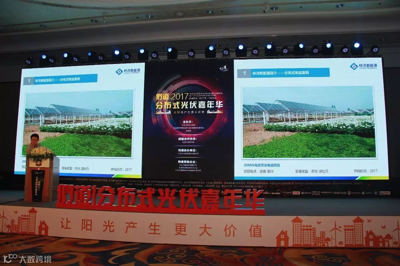 2017年7月27日,“让阳光产生更大价值” 們道|首届分布式光伏嘉年华主论坛在苏州召开,林洋能源副总裁、林洋新能源总经理裴骏发表主题为《专注分布式,林洋新能源引领技术新趋势》的演讲,从“三位一体”的角度详细介绍了具有林洋特色的分布式发展道路。