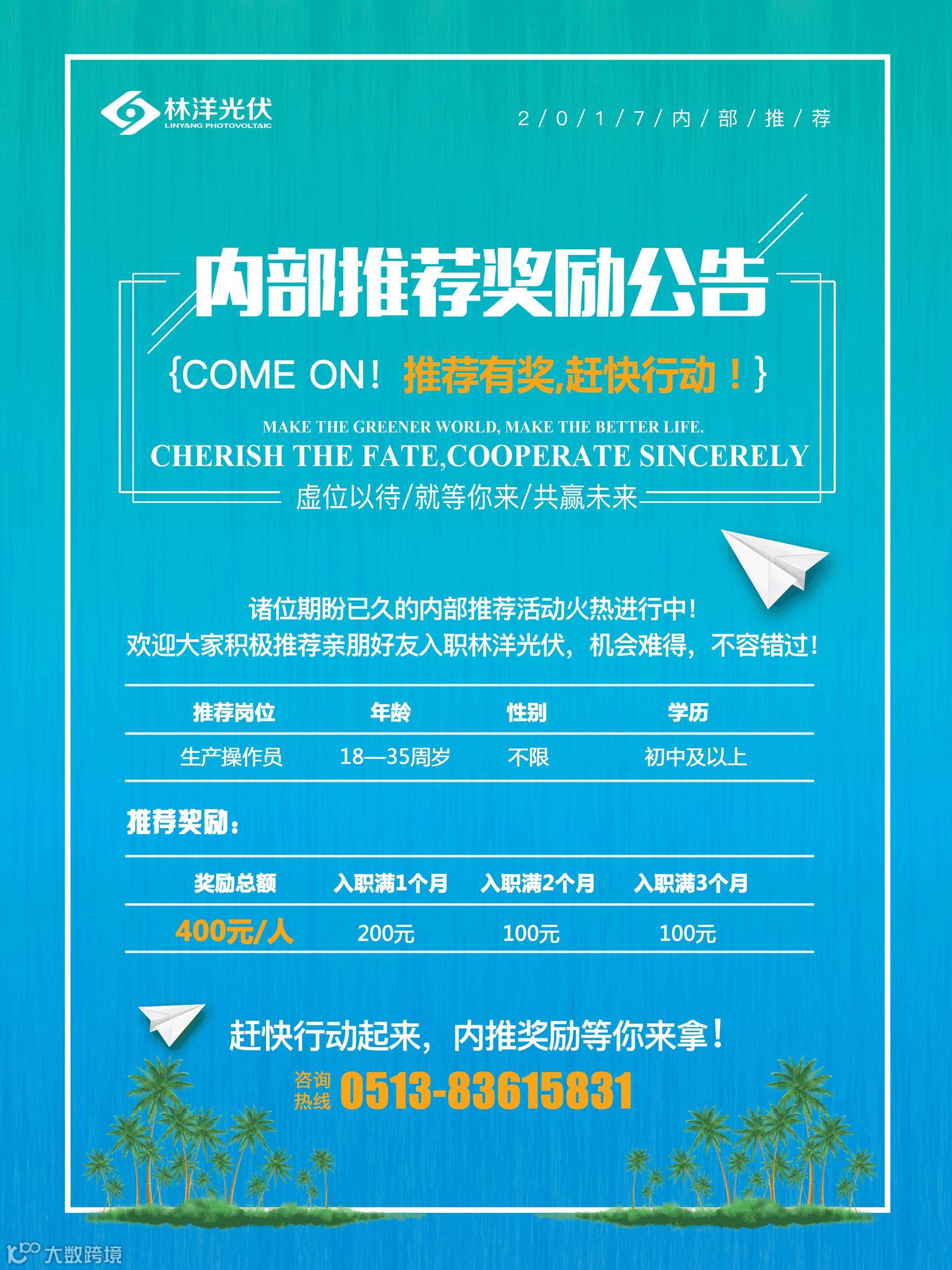 导读:即日起,林洋光伏 2017内部推荐通道 正式开通啦~推(gan)荐有奖