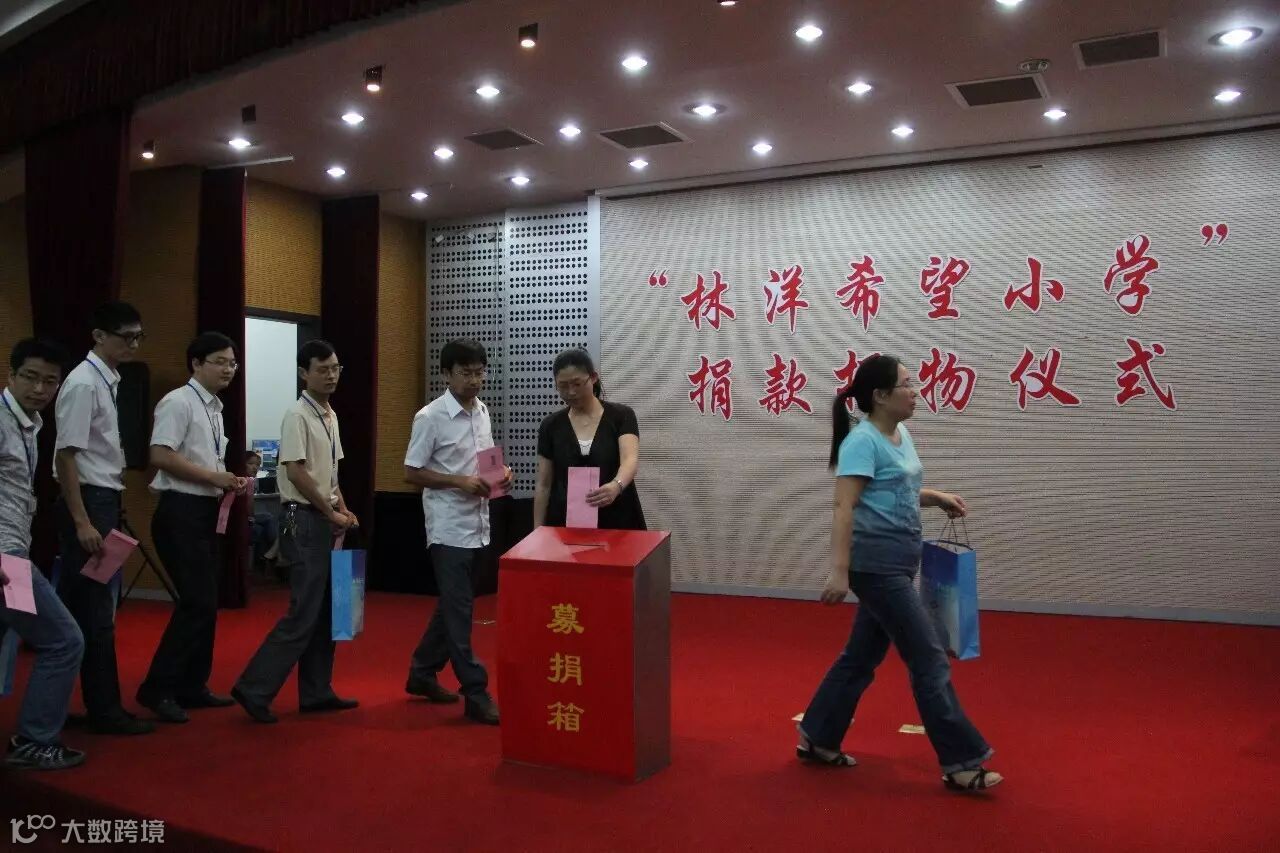 捐款20万元成立“林洋希望小学”,并捐衣物28箱。