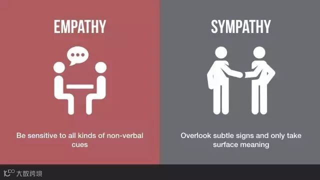 在与人交谈时,同理心表现出来的是注意对方各种语言或肢体动作的细节来体会对方当时的情感。而同情心有时候便会忽视一些细节,只获得一些表面的信息,来判断对方的情感。