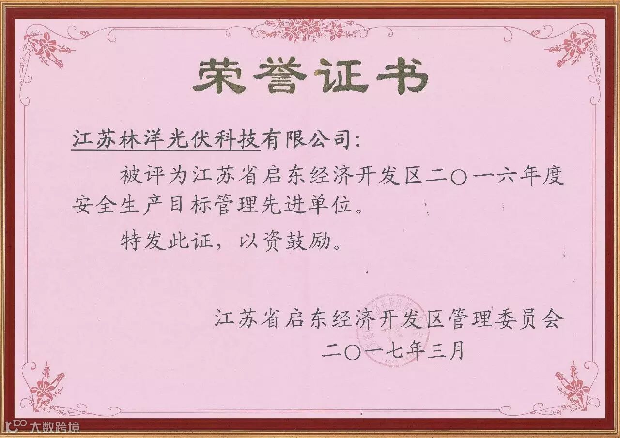 在日前召开的全区安全生产工作会议上,林洋光伏被启东市经济开发区管委会授予“2016年度安全生产先进单位”称号。