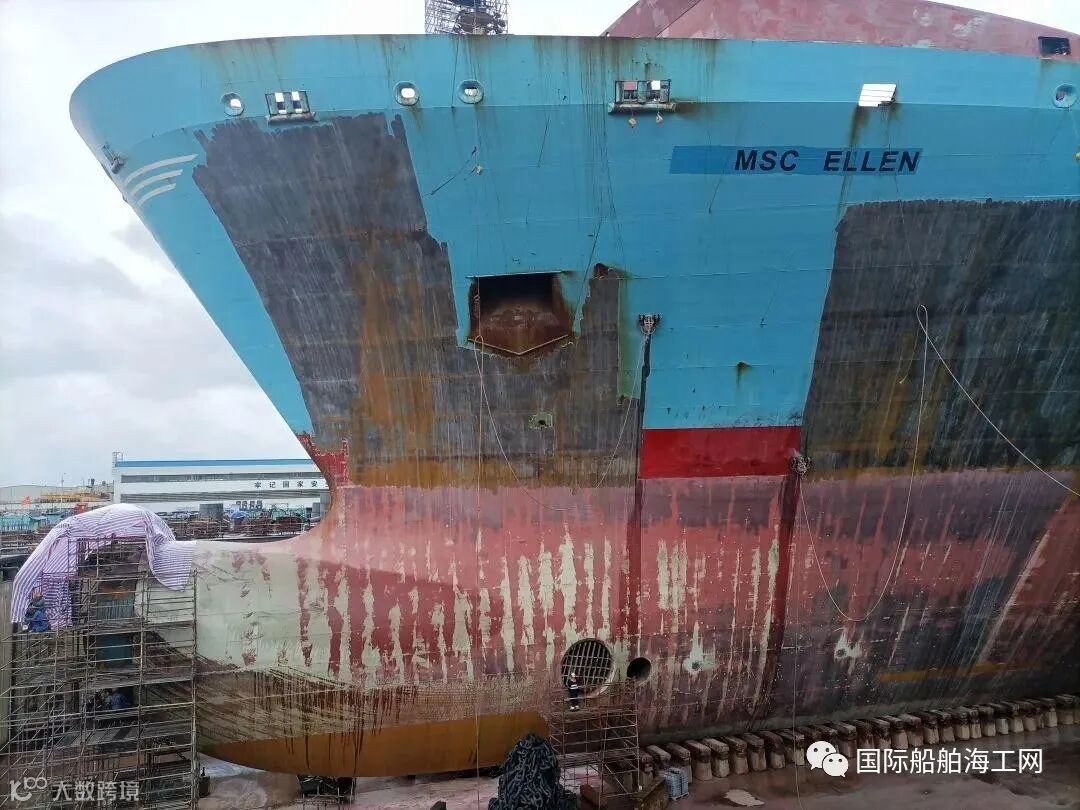 ● 8月7日,“MSC艾伦”轮进1#坞抽干水,在施工的重要关键性部位实施进行现场跟踪指导,保证每一道工序和施工质量符合标准;