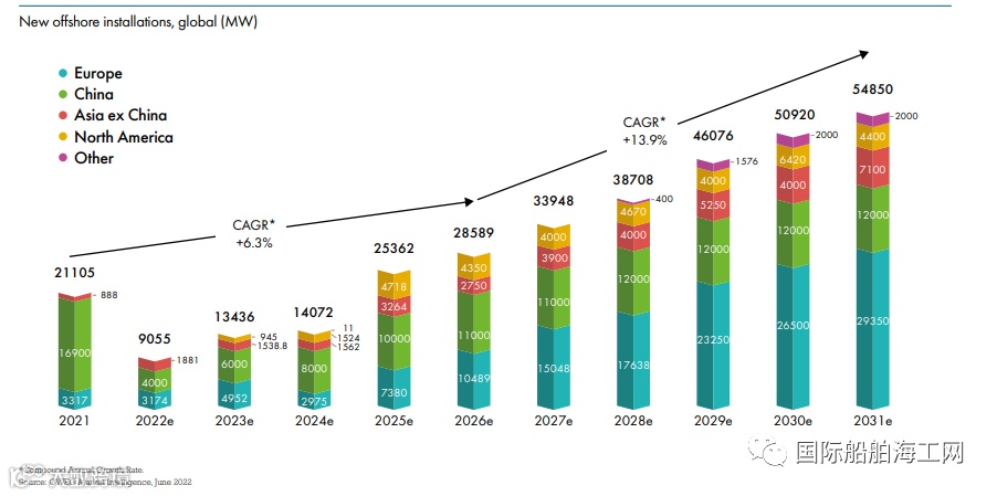 来源:全球风能理事会GWEC、国际船舶海工网。