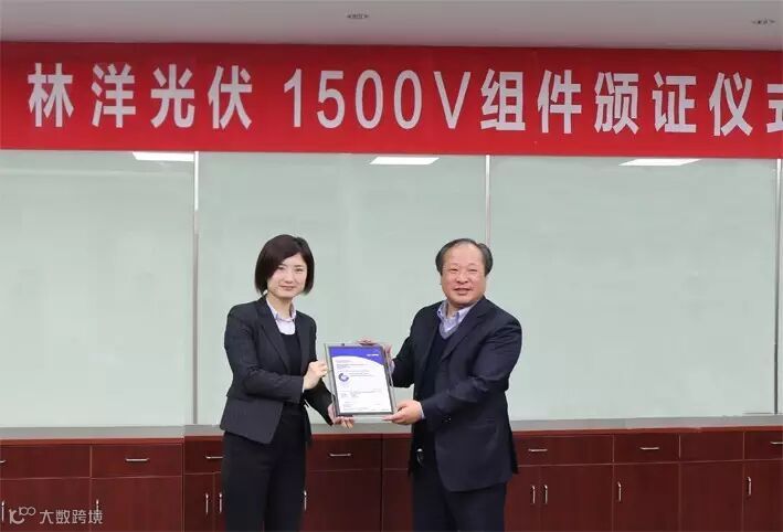 近日,TUV NORD集团与江苏林洋光伏科技有限公司联合对外宣布:林洋光伏最新开发的1500V系统电压光伏单晶组件顺利通过TUV NORD集团的认证。TUV NORD大中华区副总裁、戎得(上海)光伏科技总经理须婷婷女士向林洋光伏颁发了1500V组件认证证书。