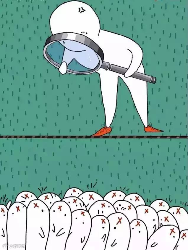 夸大通常发生在你看待自己的错误、恐惧时,你夸大了它们的重要性:“天啊!我做了一件错事。多糟糕,多可怕!”你通过放大镜来看你的错误,使它们看起来比真实中的严重得多。