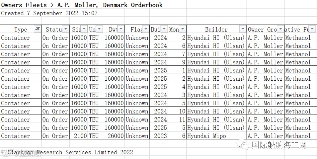 早在2021年7月,马士基就率先宣布在韩国KOSE旗下的现代重工订造一艘2100TEU的甲醇燃料集装箱船,预计将在明年年中交付。