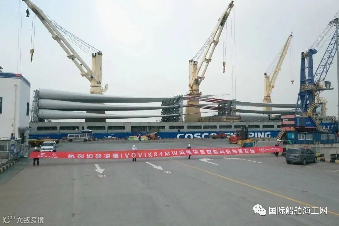 7月24日晚,特运重吊船“大紫云”轮装载着7套风电设备从太仓港顺利启航,标志着波黑伊沃维克风电全程物流项目首船风机设备发运任务圆满完成。