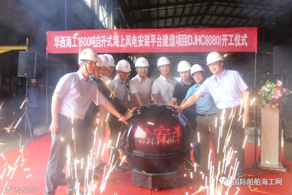 6月30日上午,天海防务全资子公司江苏大津重工有限公司为华西海工建造的海上风电施工装备--1600吨风电安装平台顺利开工。