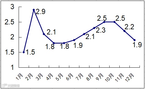 2018年CPI同比涨幅(数据来源:国家统计局网站)