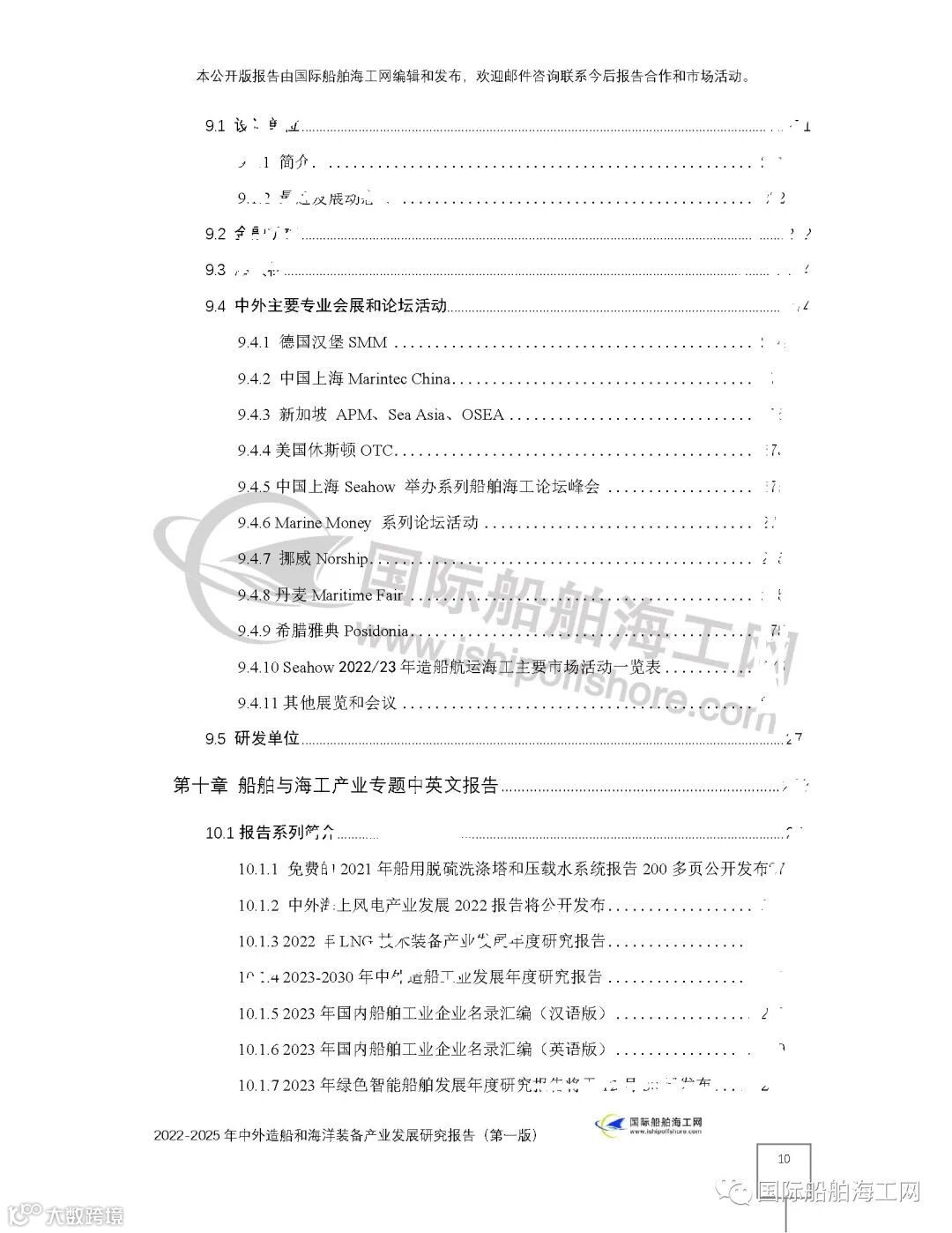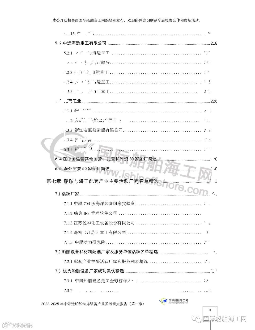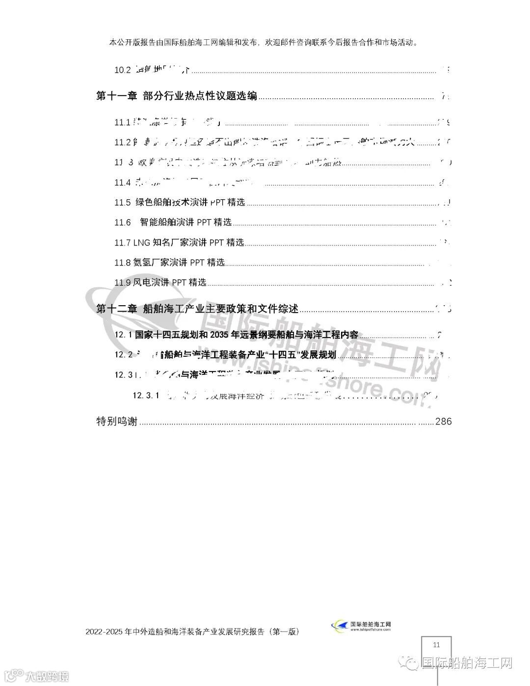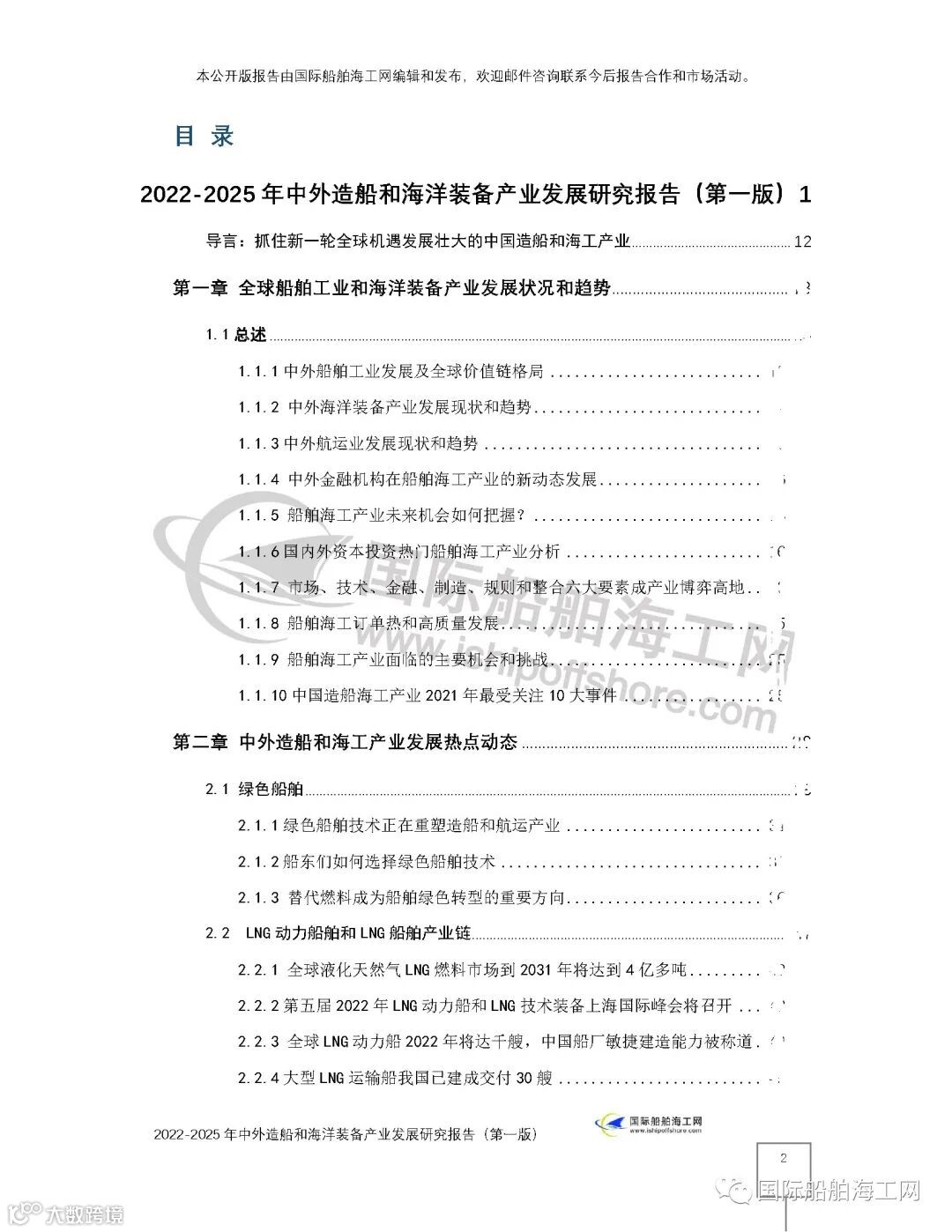 上面为提纲前一页,后9页如下。2006年起,就开始编辑发布国内外认可的中文版、英文版的"造船和海洋装备产业发展研究报告"主题等系列报告的国际船舶海工网介绍,部分提纲内容在网上遮挡,但报告高质量的内容,可以参考国际船舶海工网已经公开发布的完整内容。如: