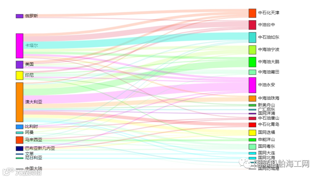 来源国方面,澳大利亚占比第一38.09%,卡塔尔占比第二23.09%,印尼占比第三8.26%,其次是马来西亚,美国,俄罗斯等。