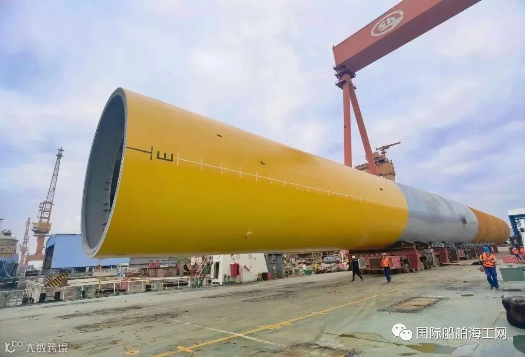 3月31日,由中国船舶黄埔文冲旗下广州文船重工有限公司建造的中广核汕尾甲子一项目78#单桩在中山基地顺利装船,整装待发。78#单桩长100.9米、直径8.3米、重量达到1558.6吨,是文船重工公司2022年制造交付的首根单桩,吹响了2022年风电产品交付冲锋的号角。