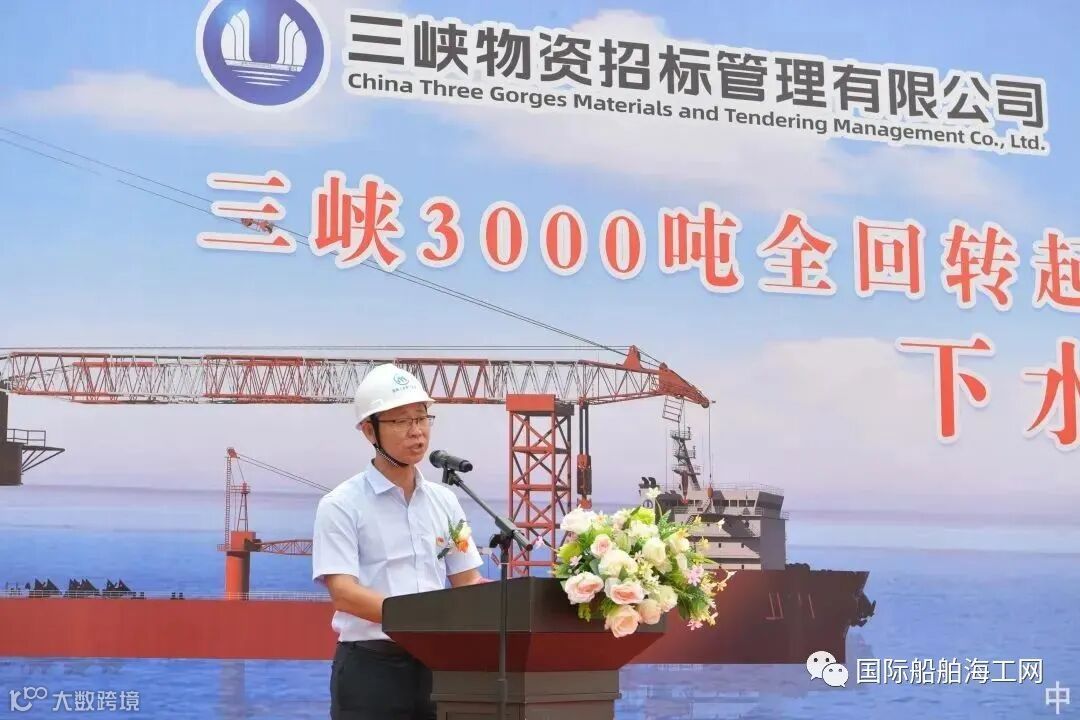 5月25日10点58分,三峡集团3000吨全回转起重船项目的下水仪式在招商工业海门基地隆重举行。三峡物资招标管理有限公司副总经理蔡肇斌、总工程师甘邯,中国船级社江苏分社办事处副主任黄林生、中国船级社实业公司南京分公司总经理胡明,招商工业副总经理吴四川、海门基地总经理梅中华及项目组成员出席本次仪式。