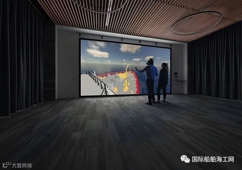 Seaspan 的 HoloShip 设施使设计师、工程师、生产团队和客户能够在 5.6 米宽的显示墙上虚拟体验船舶的完全详细、3D 和高度精确的数字模型。使用 3D 和虚拟现实耳机,参与者被带到虚拟船上,能够四处移动以查看空间并与空间以及设备、组件、系统和子系统进行交互。参与者还可以通过远程位置的网络系统访问 HoloShip。