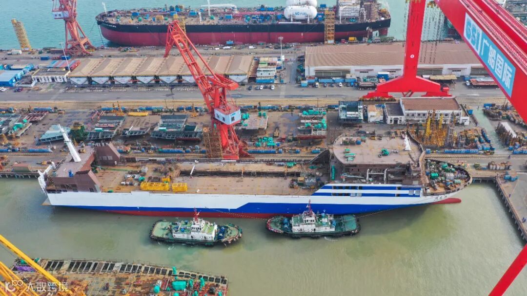 1月28日深夜零点,中国船舶集团旗下广船国际迎来新年第一批次出坞,为中远海运客运建造的3000米车线货滚船首制船在2号船坞顺利实现出坞,该船从半船起浮到出坞仅用时25天,创造了历史最短坞期记录。