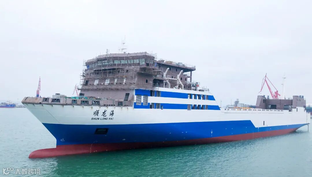 滚装船是指通过跳板采用滚装方式装卸载货车辆的运输船舶。此次出坞的货滚船全长193米,型宽26.4米,服务航速达17节,拥有4层车辆舱,车道长约3000米,可运输轿车、各类货车、集装箱和包装危险货物等。