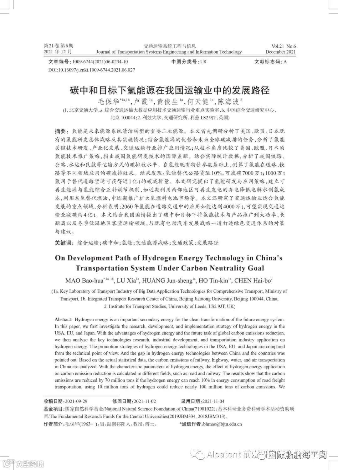 综合交通;碳中和;氢能;交通能源战略;交通政策;发展路径