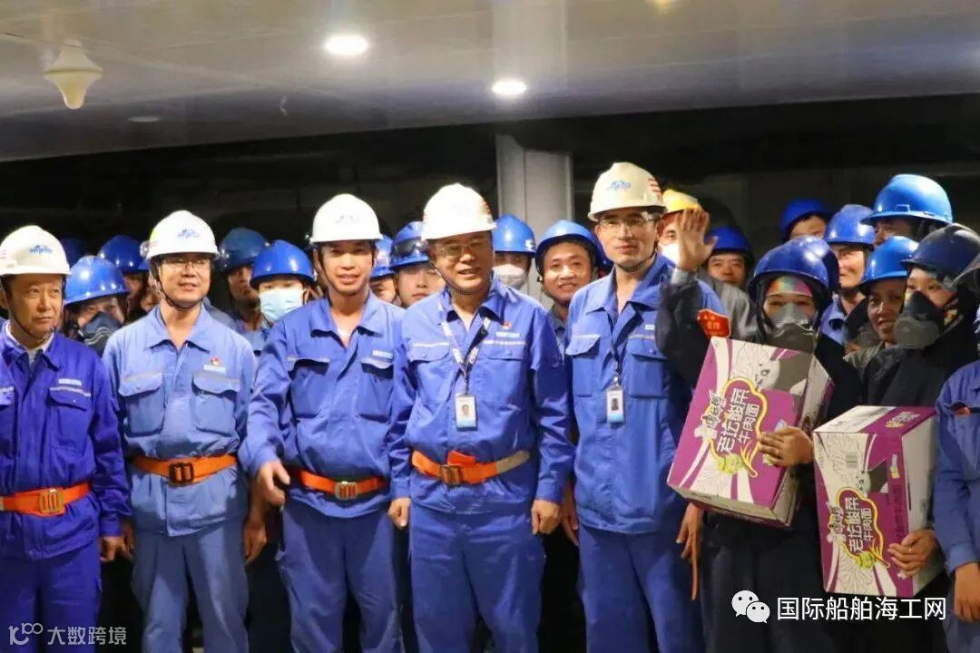 广船国际党委副书记、总经理陈激在客滚船上慰问员工