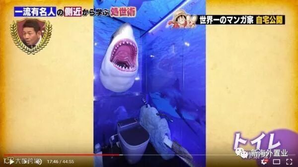 看豪宅内部处处是机关,宛如一个小型环球影城,小孩子与大人的游乐园,室外摆着用原木做的小火车,还有娃娃机,里面是漫画的各种手办和周边。厕所也被装潢得像是在海中,中间有只大白鲨冲出墙壁,看起来相当逼真,现场来宾看了也忍不住发出羡慕的惊叹声。