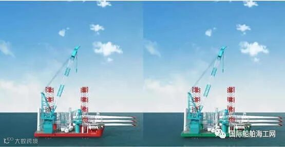 4、大型风机安装:平台设计考虑:风轮吊储存2套、单叶片吊装储存3套;同时具备主吊在风机安装同时,辅吊具备风机转驳储存能力,减少风机运输船在波长、波高较大无法靠泊情况下,平台可实现持续风机安装,充分利用海上安装窗口期,提高工效。