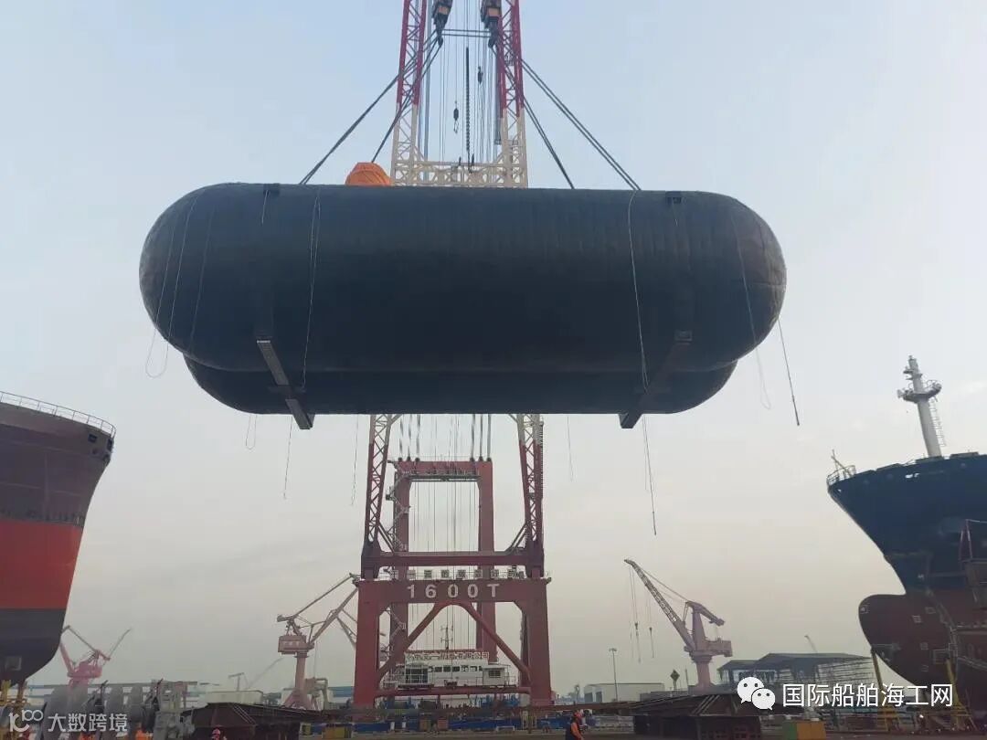 12月30中国船舶集团旗下江南造船顺利完成30000立方米双燃料LNG船(H2645)2#罐——世界上最大C型LNG罐的驳运吊装,受到船东赞扬。