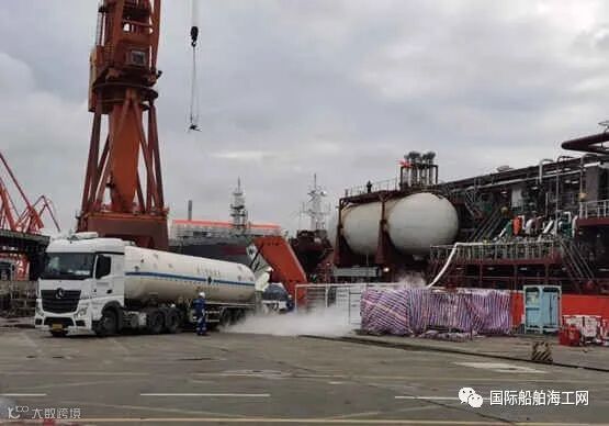 该船是公司第一次承造气体运输船型,第一次使用世界首台套科研主机,第一次进行液货系统自主生产设计,第一次对露天货罐预冷,第一次和新加注厂家合作,第一次自主独立主导加注过程。