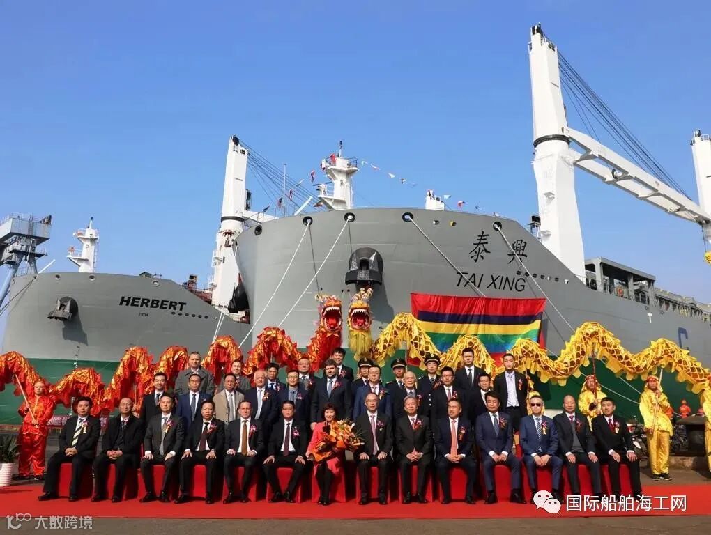 12月6日,中波轮船股份公司(中波公司),订造的四艘62000载重吨重吊船首制船“泰兴”轮命名交接仪式,在江阴中船澄西船厂西港池举行。