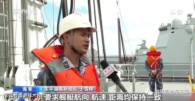 东平湖舰补给长于雪林:航行横向补给难度比较大,要求舰艇航向、航速、距离均保持一致,舰艇各部门密切配合,相互协同,每一个环节都准确无误,才能保证补给成功。