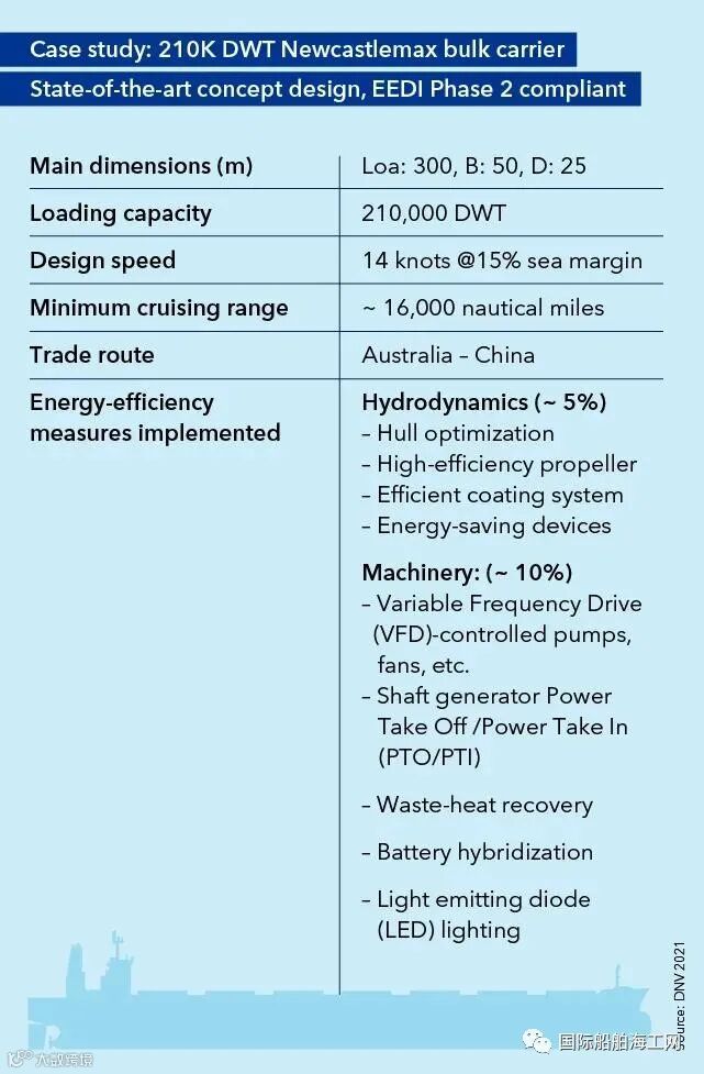 表1:关于21万载重吨Newcastlemax型散货船的案例研究,其先进的概念设计符合EEDI第2阶段