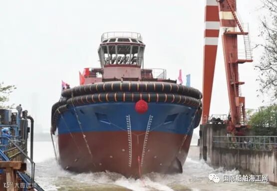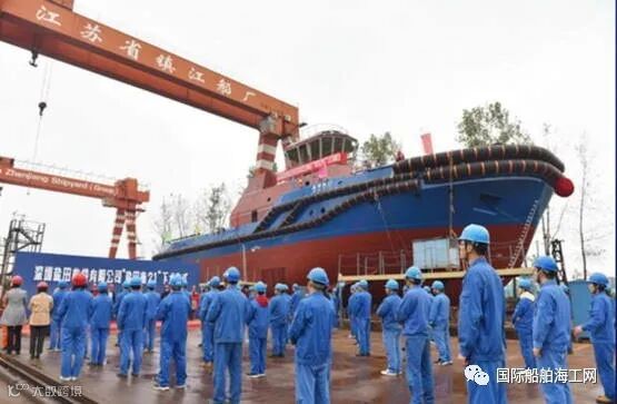 2021年11月6日,镇江船厂为深圳盐田拖轮有限公司设计建造的“盐田拖21”顺利下水,成为目前国内市场带脱硝装置的最大功率全回转近海拖船。