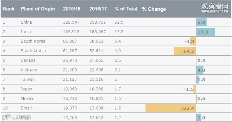 具体来看,中国留美本科生人数连续第三年超过研究生人数,2016-2017学年,有142851名中国本科生在美学习,较上一学年增长5.3%。中国在美研究生共12832人,增长4.1%。剩余人数为非学位生和选择性实习。