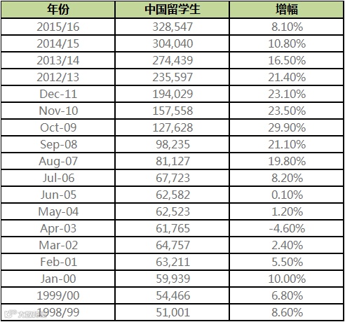 近17年赴美留学生人数变化情况(图片来源:中国教育在线)