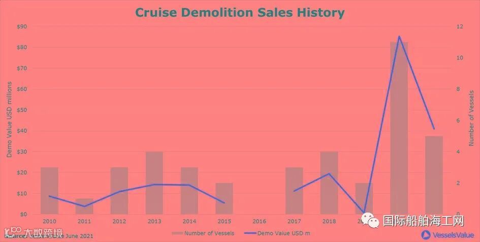 图6:邮轮拆除历史数据,2010-21