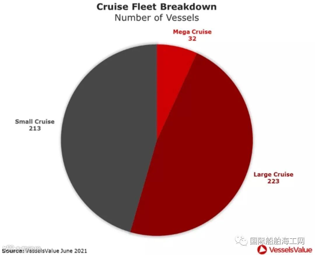 尽管小型邮轮的数量很多,但该类邮轮的的平均船龄最高,为19年,并且其载客量的市场占有率和价值均为最低,分别为11%和16%。