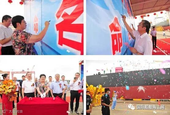 9月9日上午,扬子江船业集团为上海港禄航运有限公司建造的首制56000DWT内贸散货船命名仪式在新扬子造船举行。新船命名人吴惠英女士,上海港禄航运有限公司董事长潘忠华先生、总经理韩治东先生,中建投租赁(上海)有限公司总经理助理韩廷伟先生,沙钢物流管理有限公司副总经理宋建中先生,江苏永钢集团运输处副处长成兵先生,陕西黑猫股份有限公司董事长张林兴先生,上海中远海运重工有限公司副总经理俞惠忠先生,中国船级社江阴办事处主任蔡高先生,以及扬子江船业集团副董事长王建生先生、集团副总经理杜成忠、张涛先生等相关领导和嘉宾出席了仪式。命名仪式由扬子江船业集团副总经理张涛先生主持。