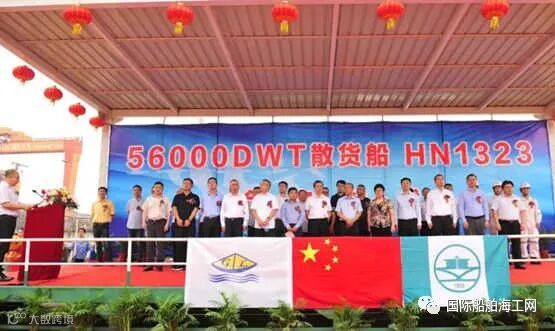 命名人吴惠英女士将新船命名为“宏泰588”轮,并为她砍缆祈福,赠祝福寄语,她祈愿新船在未来的航程中,乘风破浪,航行顺利,为船东和货主带来更多财富。