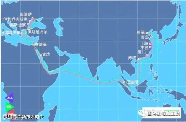 再下面的航线,大家可能就比较熟悉了,从印度洋经马六甲海峡进入太平洋的我国南海海域,过台湾海峡、最后抵达舟山港。
