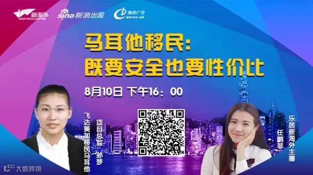 那么马耳他移民是如何将安全与性价比发挥到极致的?本期新海外直播邀请飞达美加移民总监孙梦详细解读,8月10日下午14:00敬请期待!