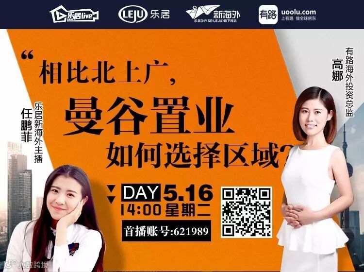 新海外直播间将于邀请有路海外投资总监高娜来告诉大家相比北上广,曼谷置业应如何选择区域?敬请期待!