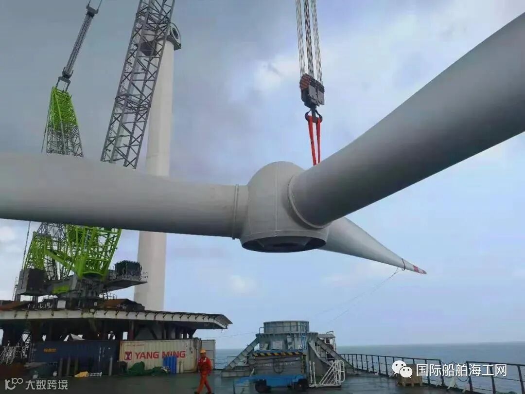 据了解,该机位三段塔筒总重354吨、单只叶片重约26.5吨。施工过程中,项目团队根据现场施工实际,克服了现场涌浪大、作业环境恶劣等诸多不利因素,利用双机抬吊等方式完成了“叶轮工艺”风机安装任务。