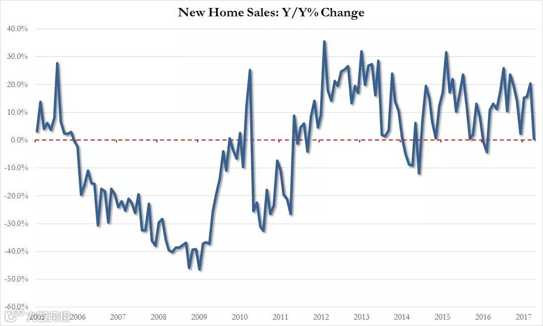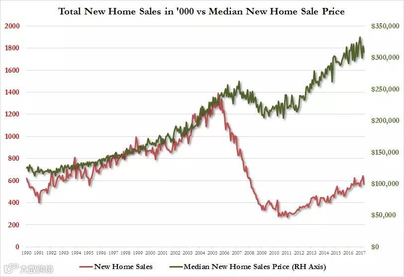 美国商务部数据显示,美国4月新屋销售年化总数56.9万户,不及预期的61万户,为连涨三个月后首降,也脱离了3月前值所创的九年半新高。3月年化总数由62.1万上修至64.2万户,进一步刷新2007年10月以来最高。