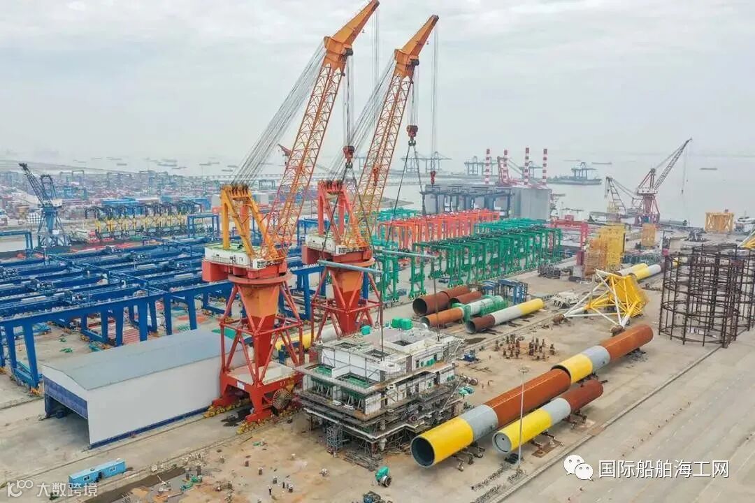 海上升压站上部模块的大合拢吊装作业是项目陆上建造的关键路径节点,标志着项目陆上建造主体钢结构工作封顶收尾,开始进入以电气系统安装为主的各专业大舾装、调试阶段。